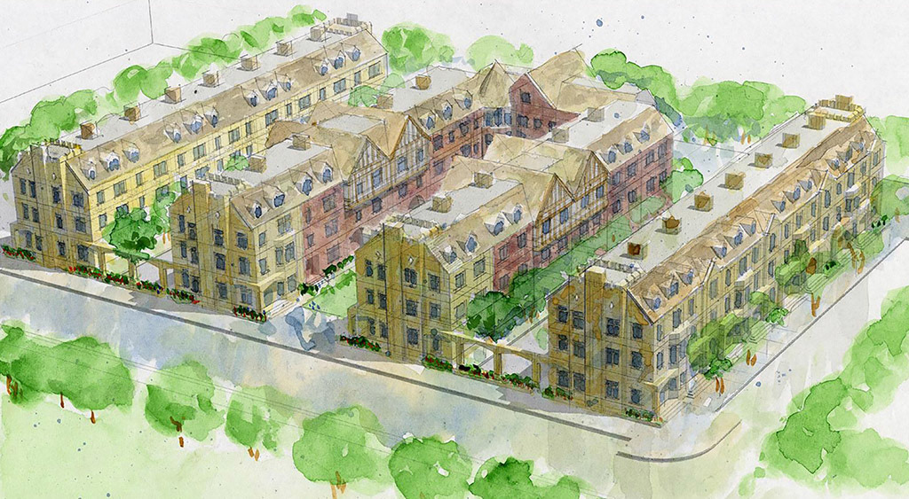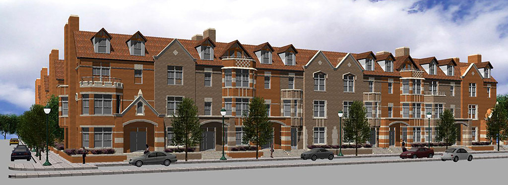 Lighthouse Landing was a segment of a proposed massive redevelopment of a shuttered automotive plant. These rows of townhouses looked to precedents of historic architecture of the region for inspiration.